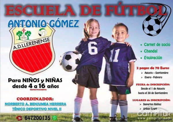 Desde la Junta Directiva de la Agrupación Deportiva Llerenense informan de que ya está abierto el plazo de inscripción para la Escuela de Fútbol “Antonio Gómez” 2017/2018.